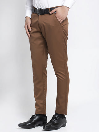 Indian Needle Men's Brown Tapered Fit Formal Trousers