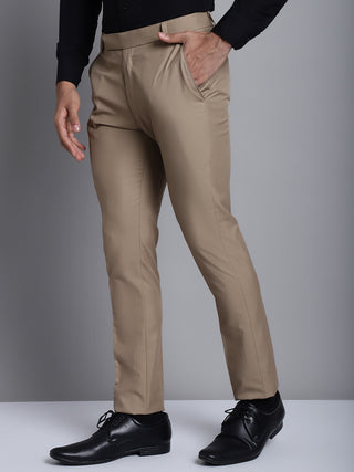 Indian Needle Men's Dark-Beige Tapered Fit Formal Trousers
