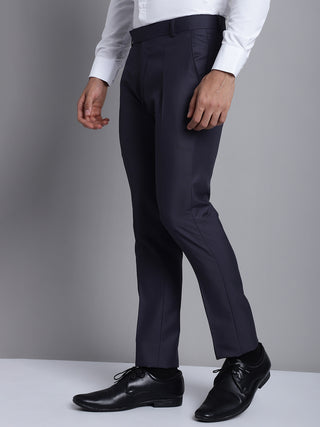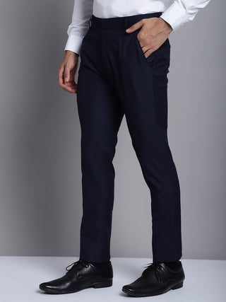 Indian Needle Men's Navy Blue Tapered Fit Formal Trousers
