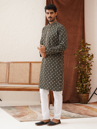 Men's Animal Printed Pure Cotton Straight Kurta Pyjama Set