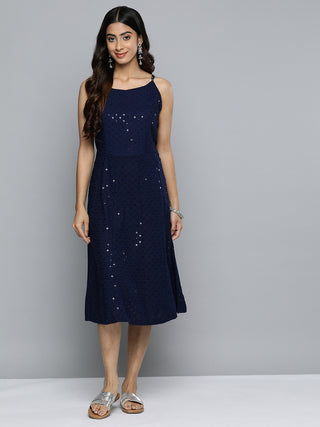 Jompers Navy Floral Sequin Embroidered A-Line Midi Dress