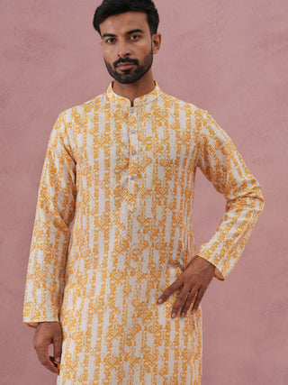 Men's Yellow Printed Silk Blend Kurta Payjama