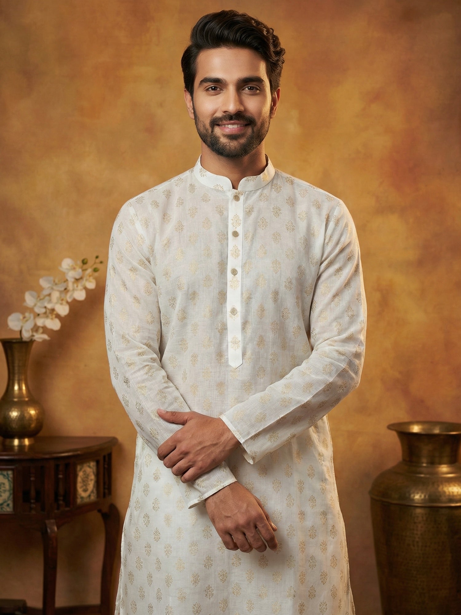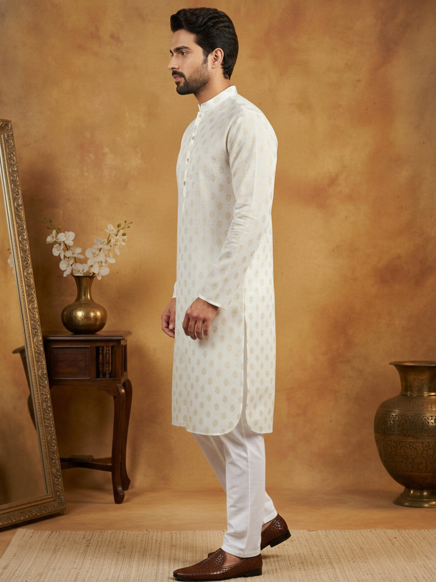 Classic Cotton Blend Foil Print Kurta Set
