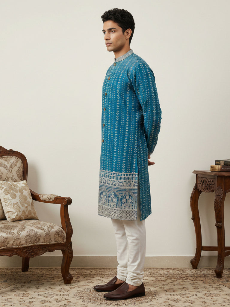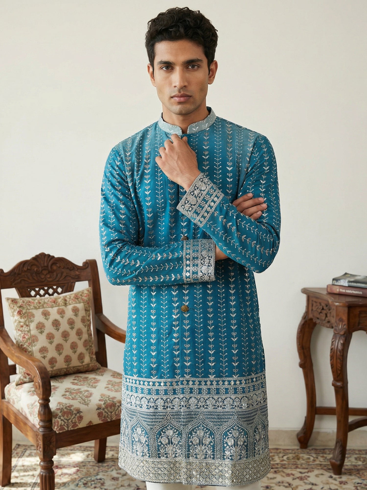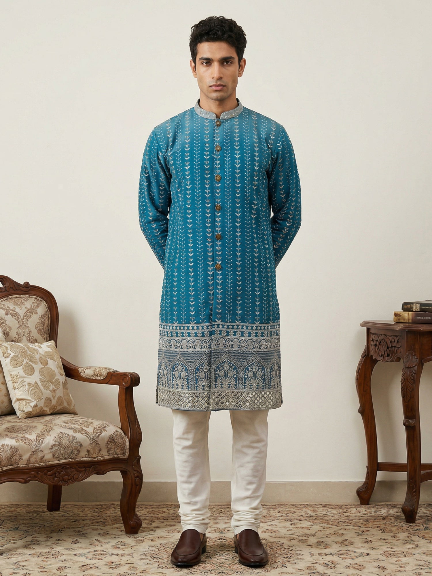 Designer Embroidery Silk Blend Kurta Pyjama for Men
