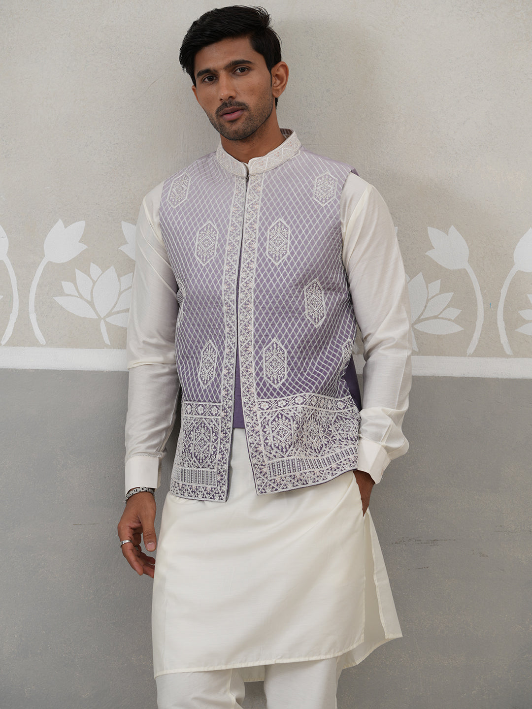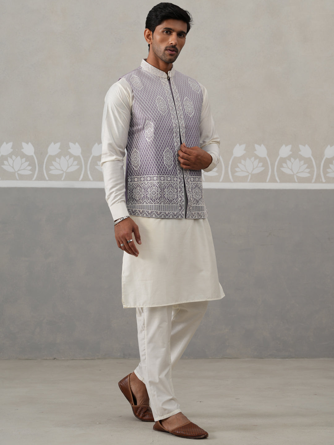 Embroidered Silk blend Nehru Jacket Kurta Set