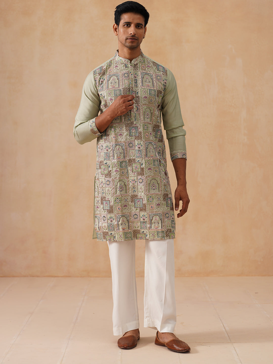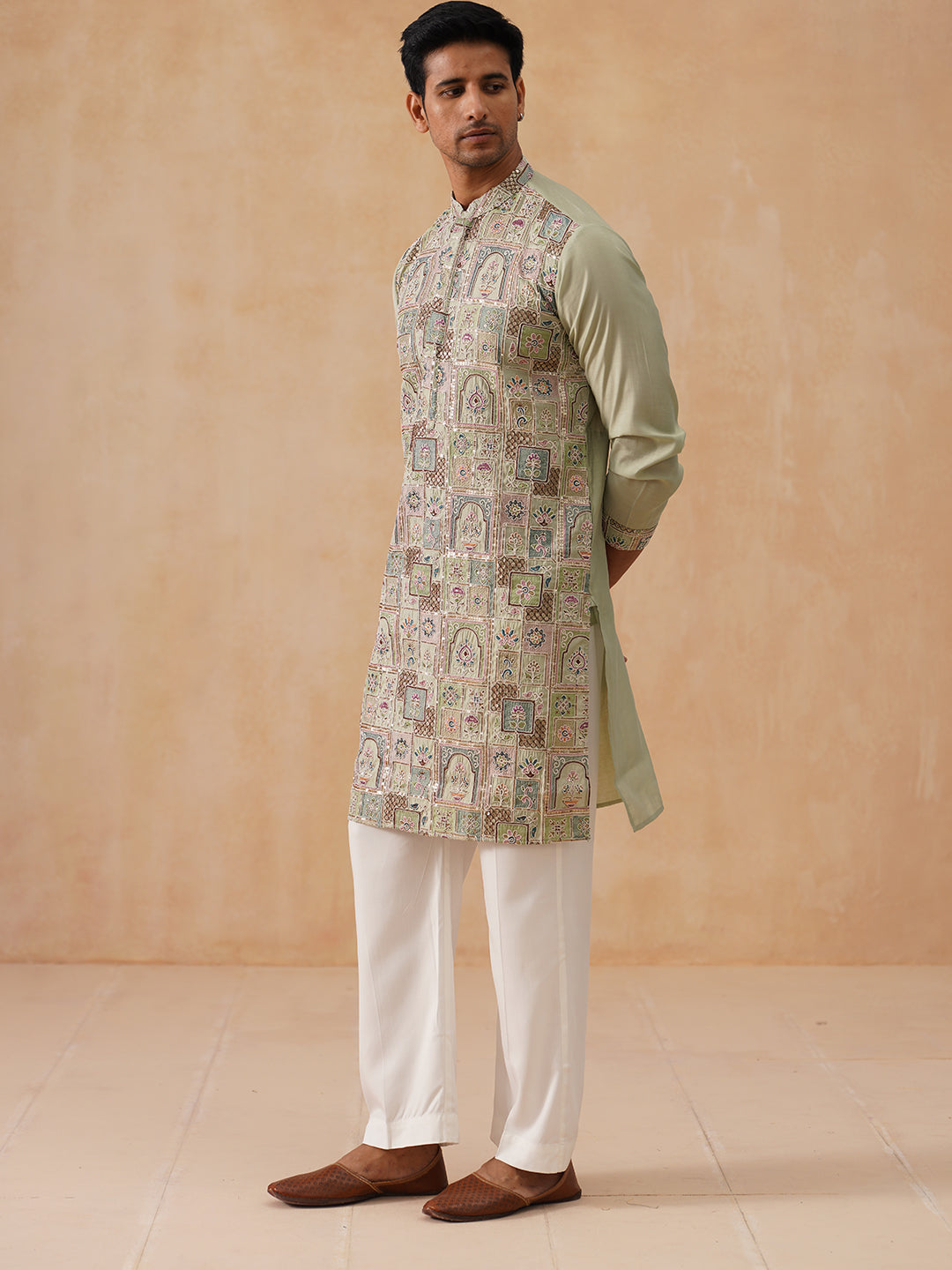 Embroidered Straight Kurta Set For Men