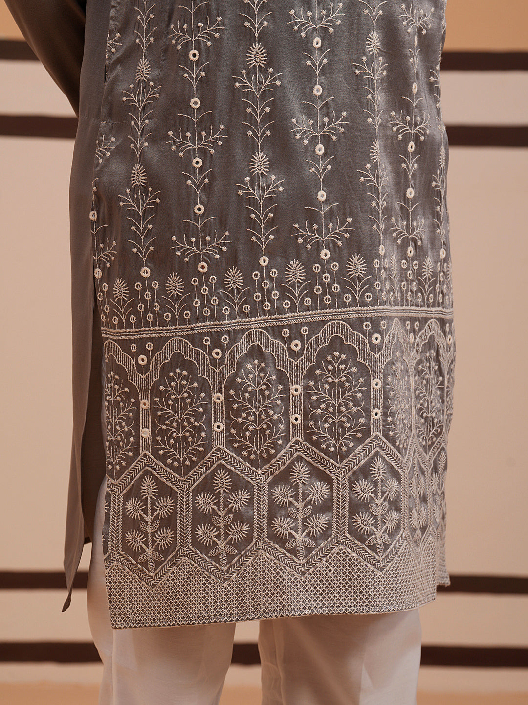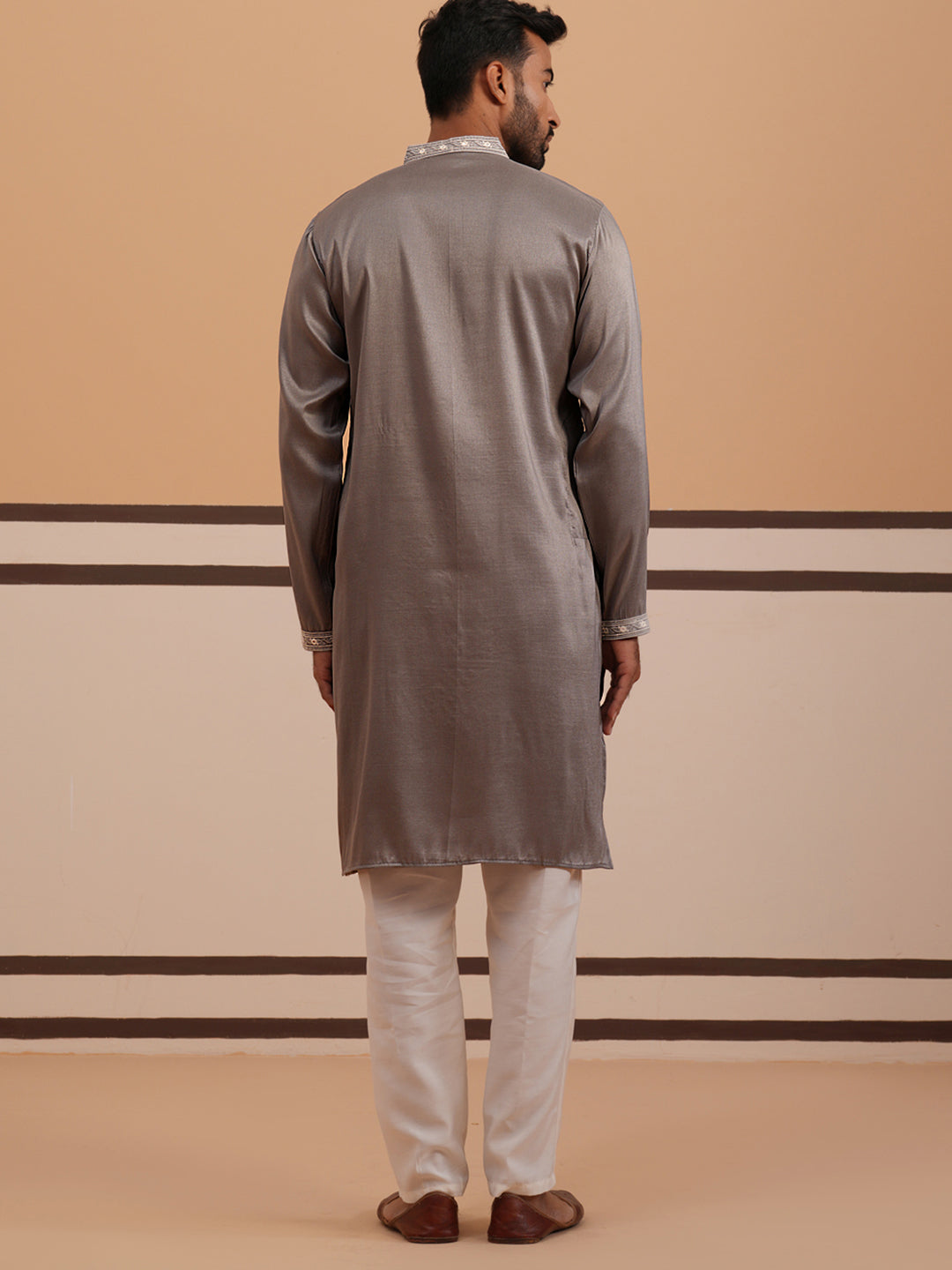 Festive Silk Blend Kurta Pyjama with Sequins Work