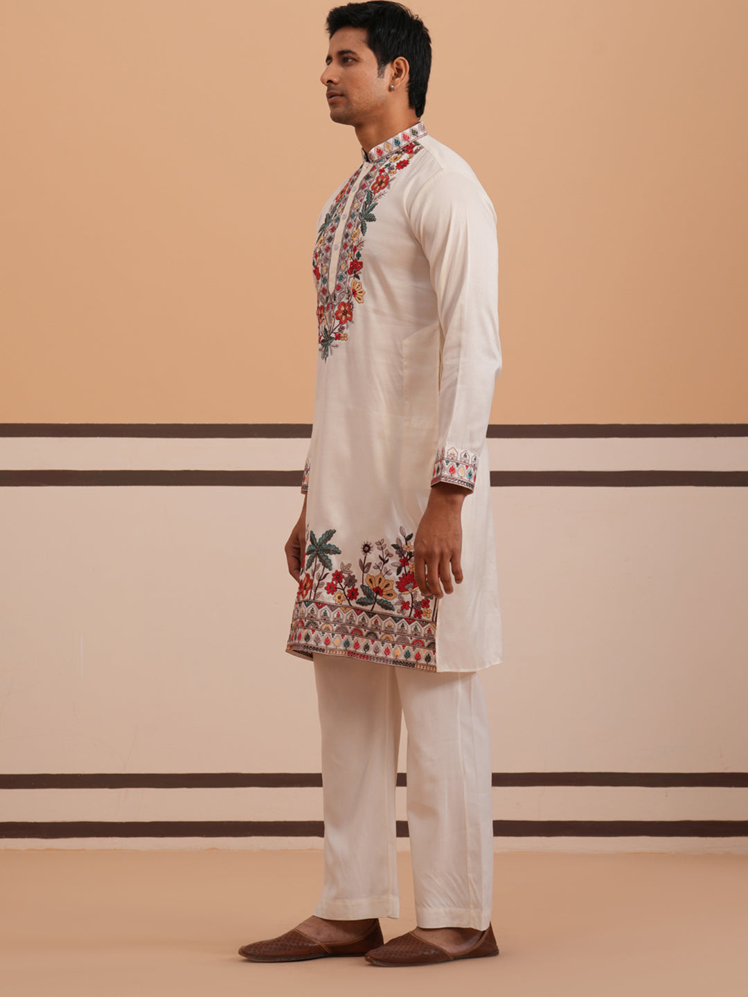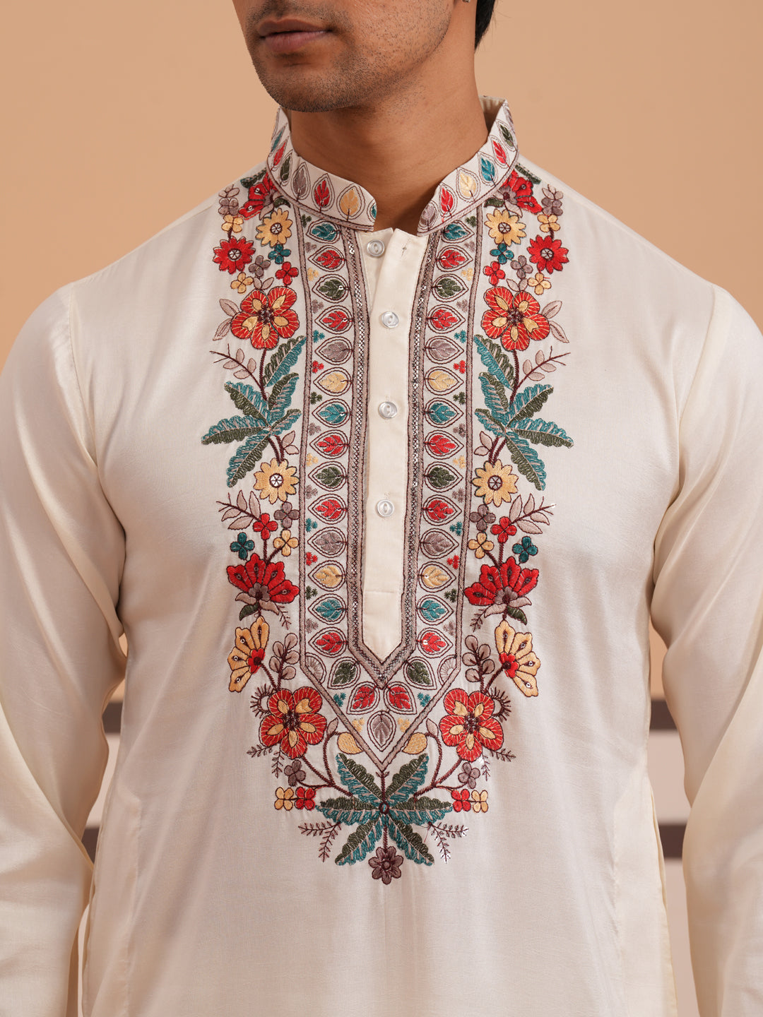 Floral Embroidered Silk Blend Kurta Set