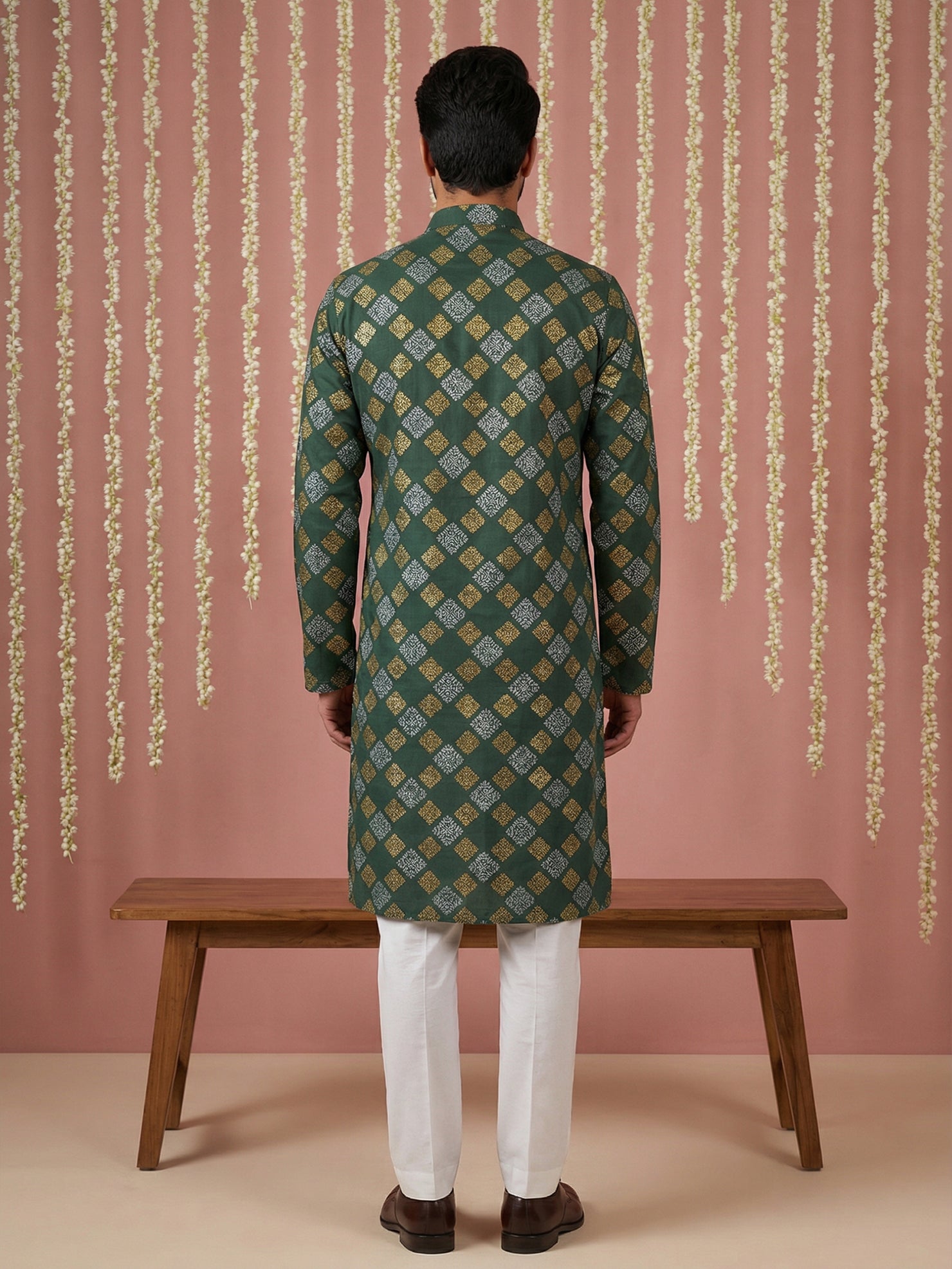 Men Cotton Blend Kurta Pyjama with Foil Print