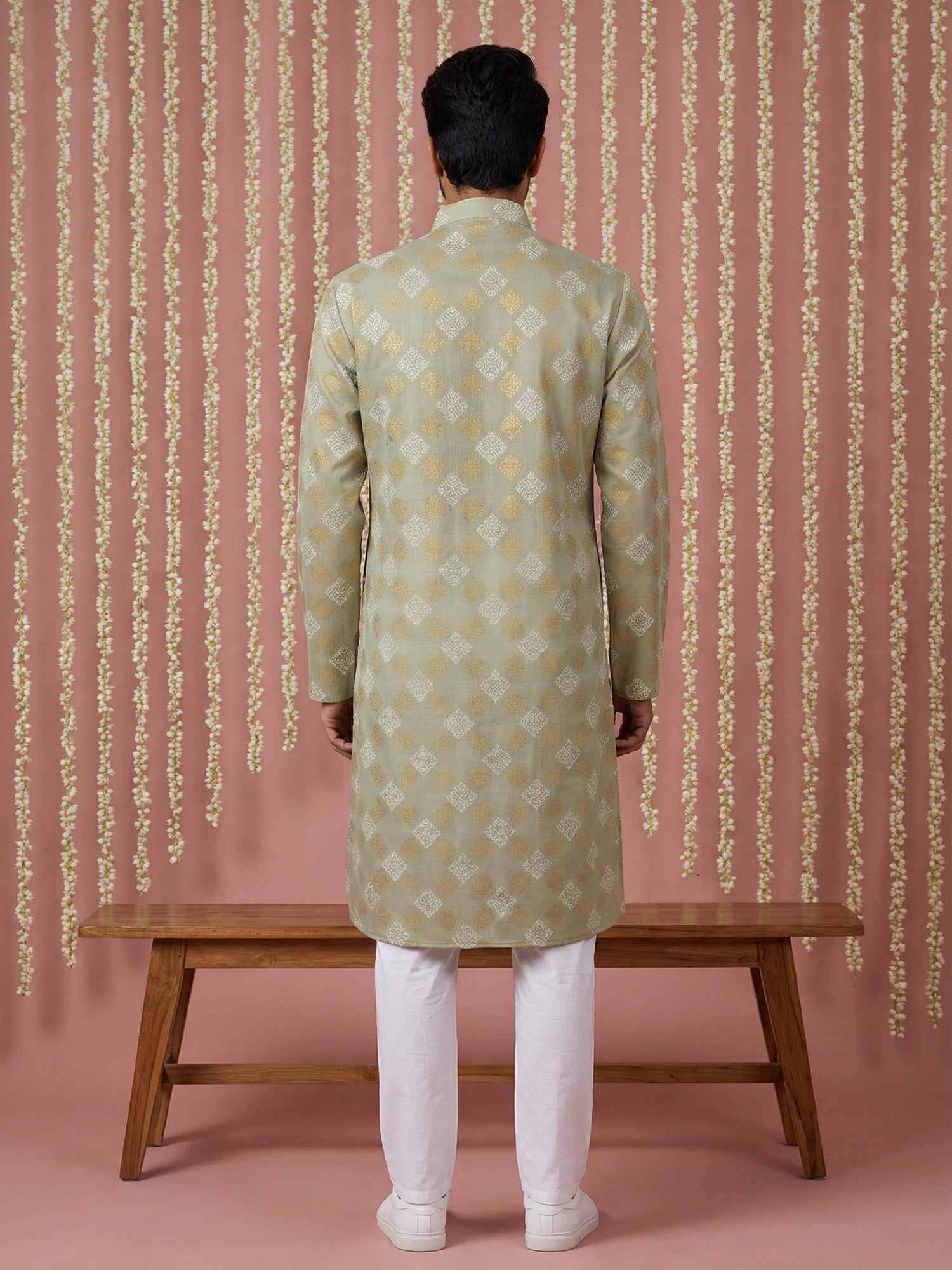 Men Cotton Blend Kurta Pyjama with Foil Print