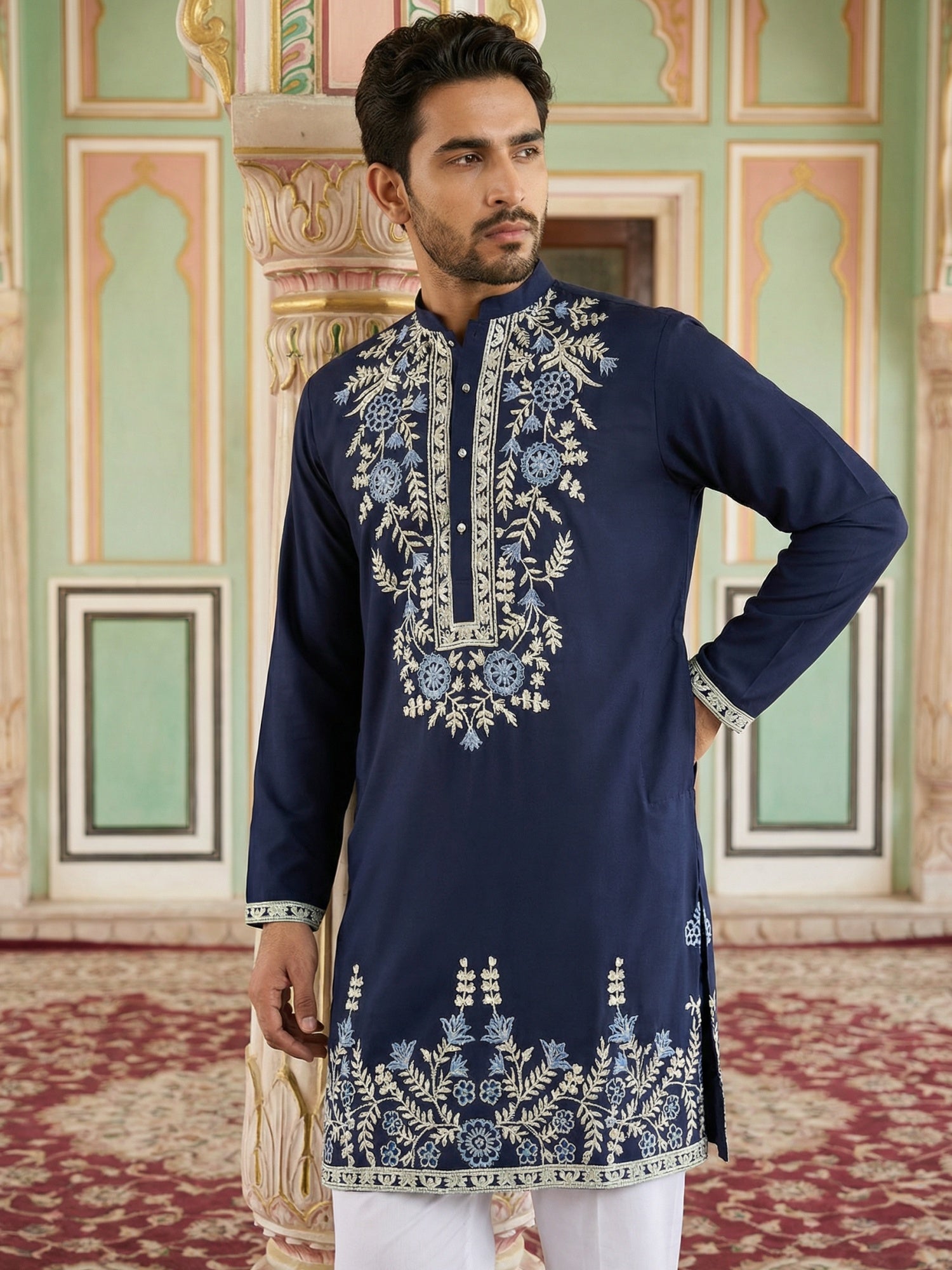 Men Japanese Fabric Embroidered Kurta Set