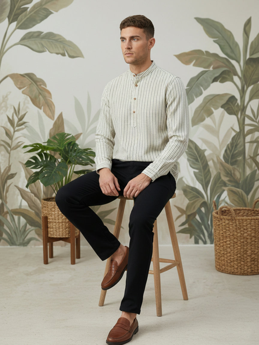 Men’s Grey Striped Short Kurta
