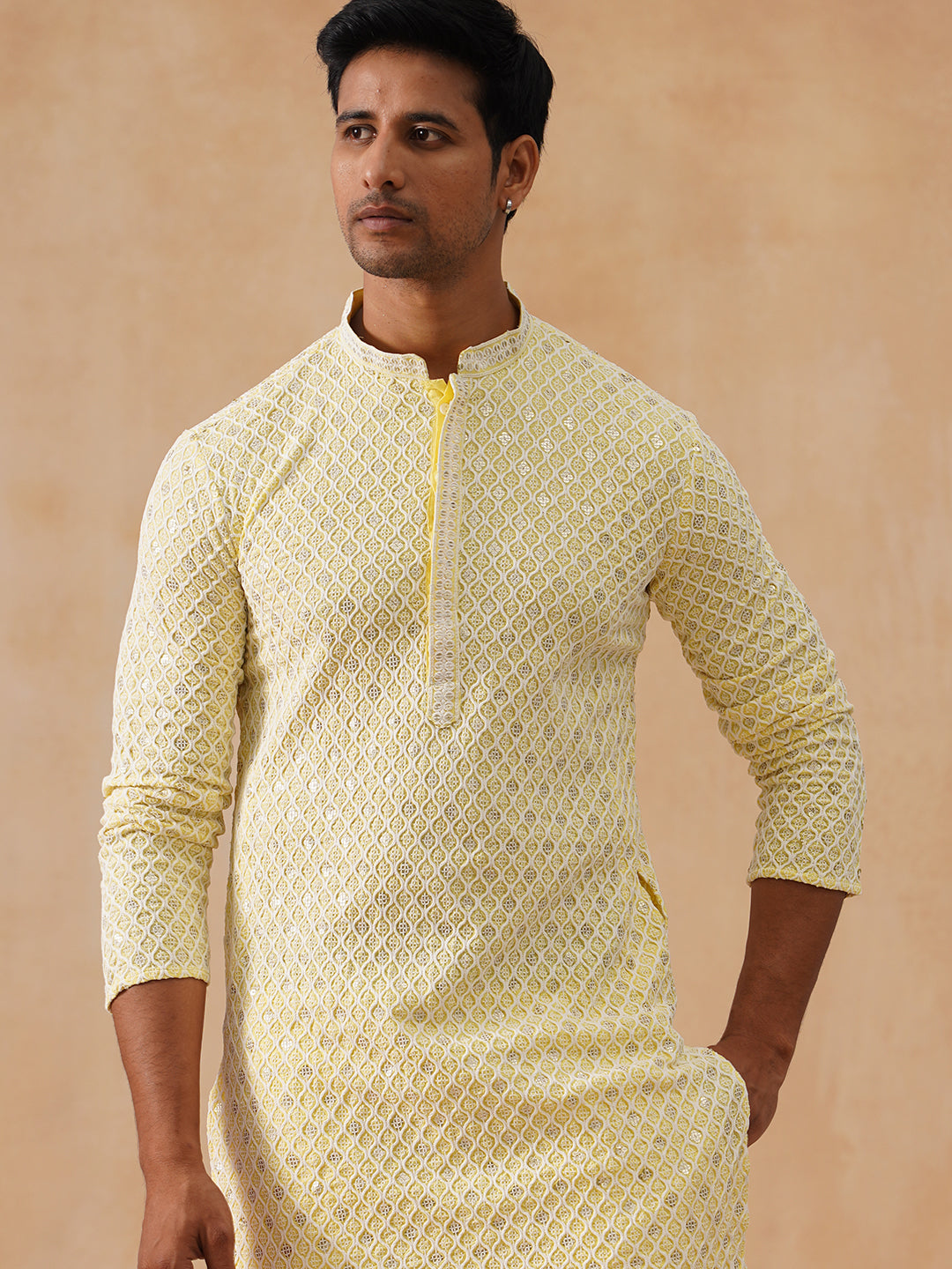 Men's Chikankari Embroidered and Sequence Kurta with Pyjama