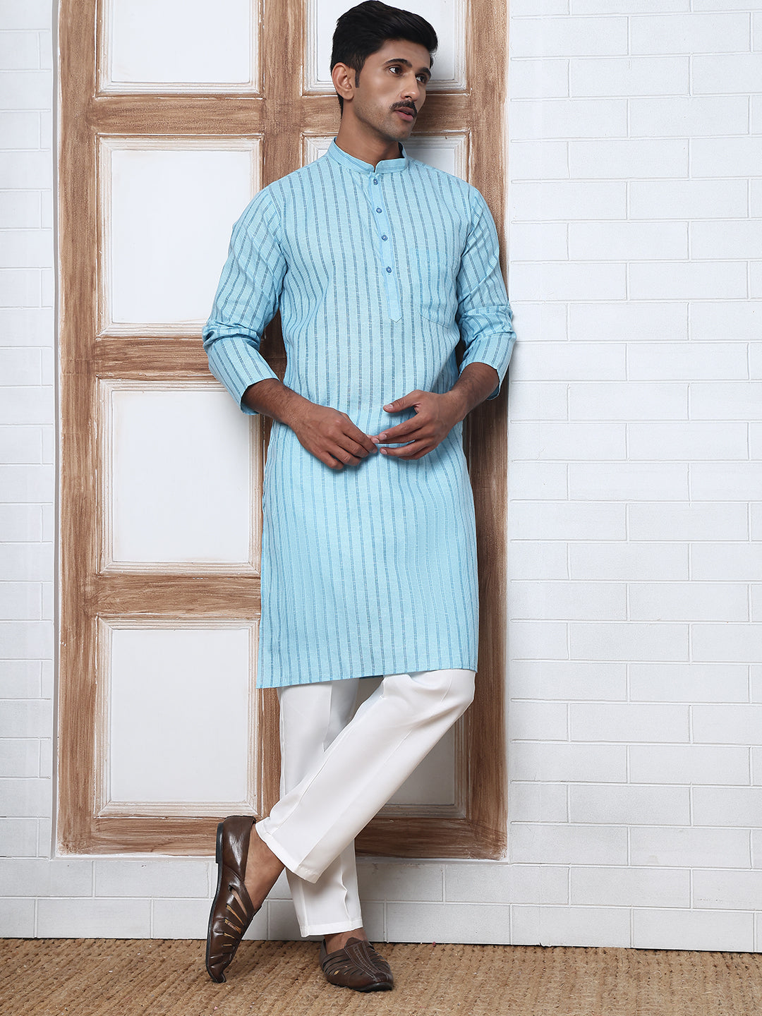 Men's Cotton Striped Kurta Pyjama Set