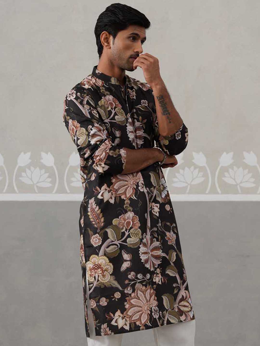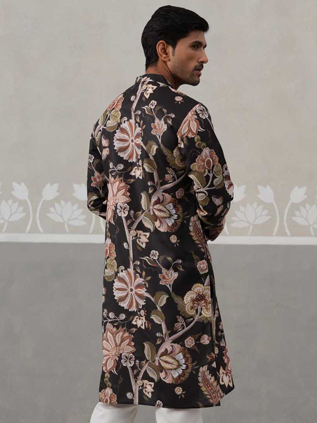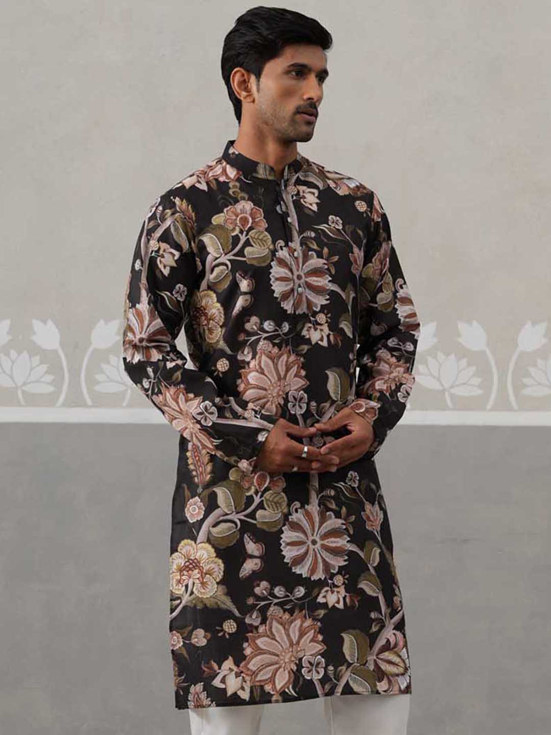 Men's Floral Printed Cotton Straight Kurta