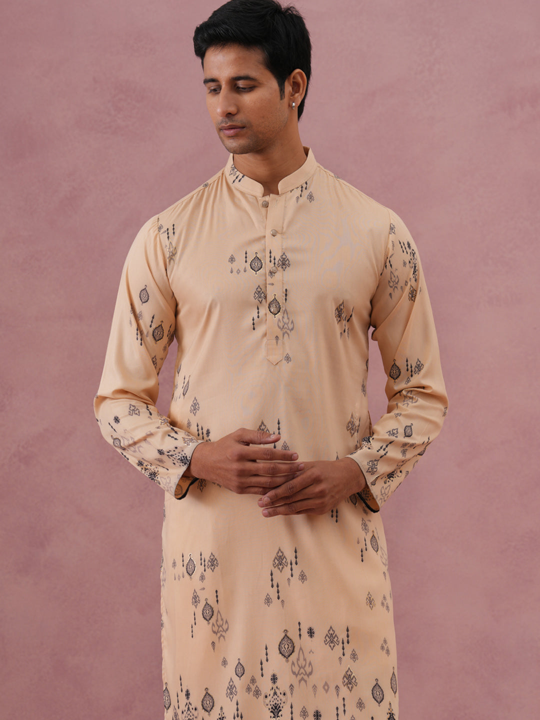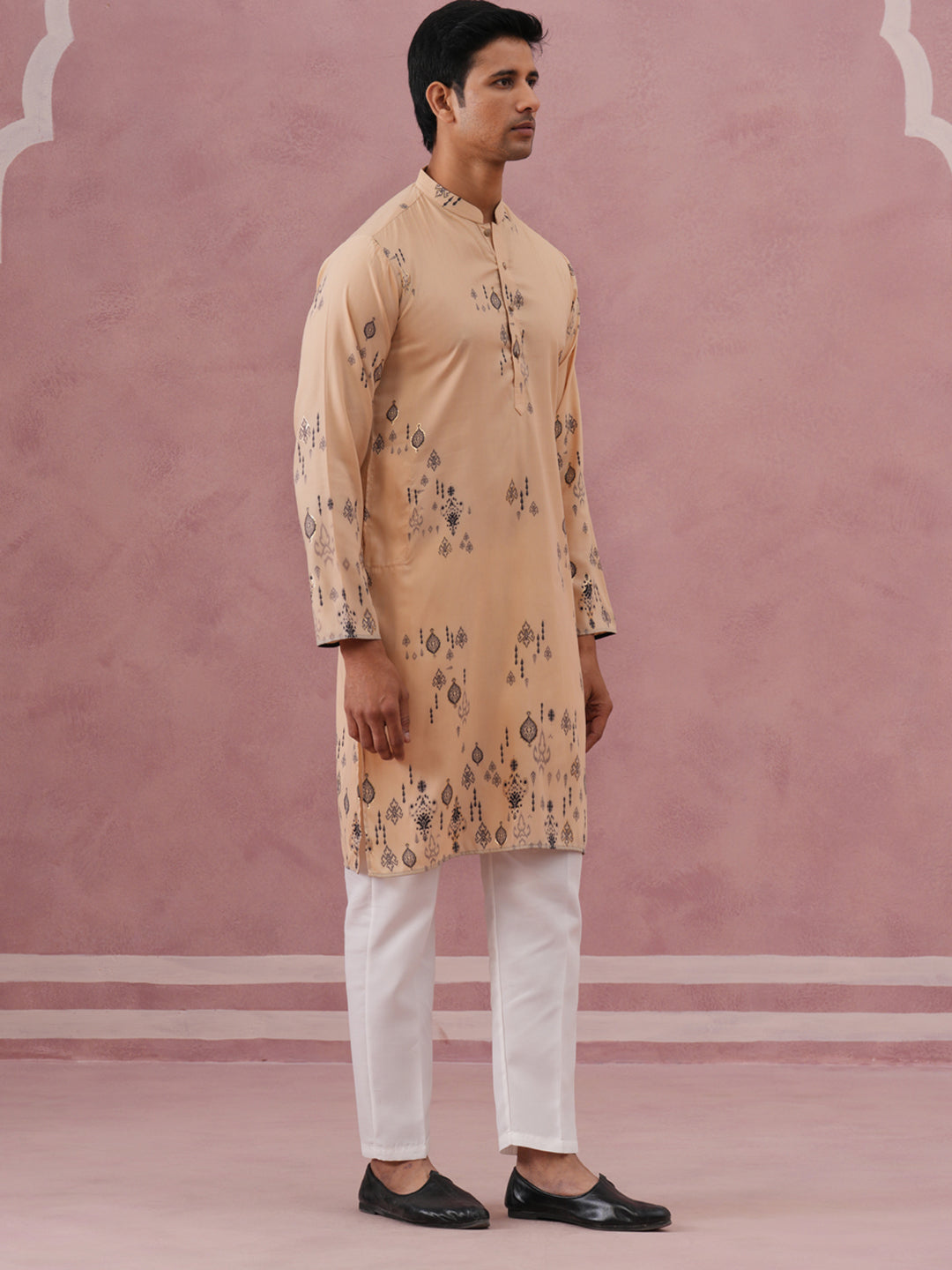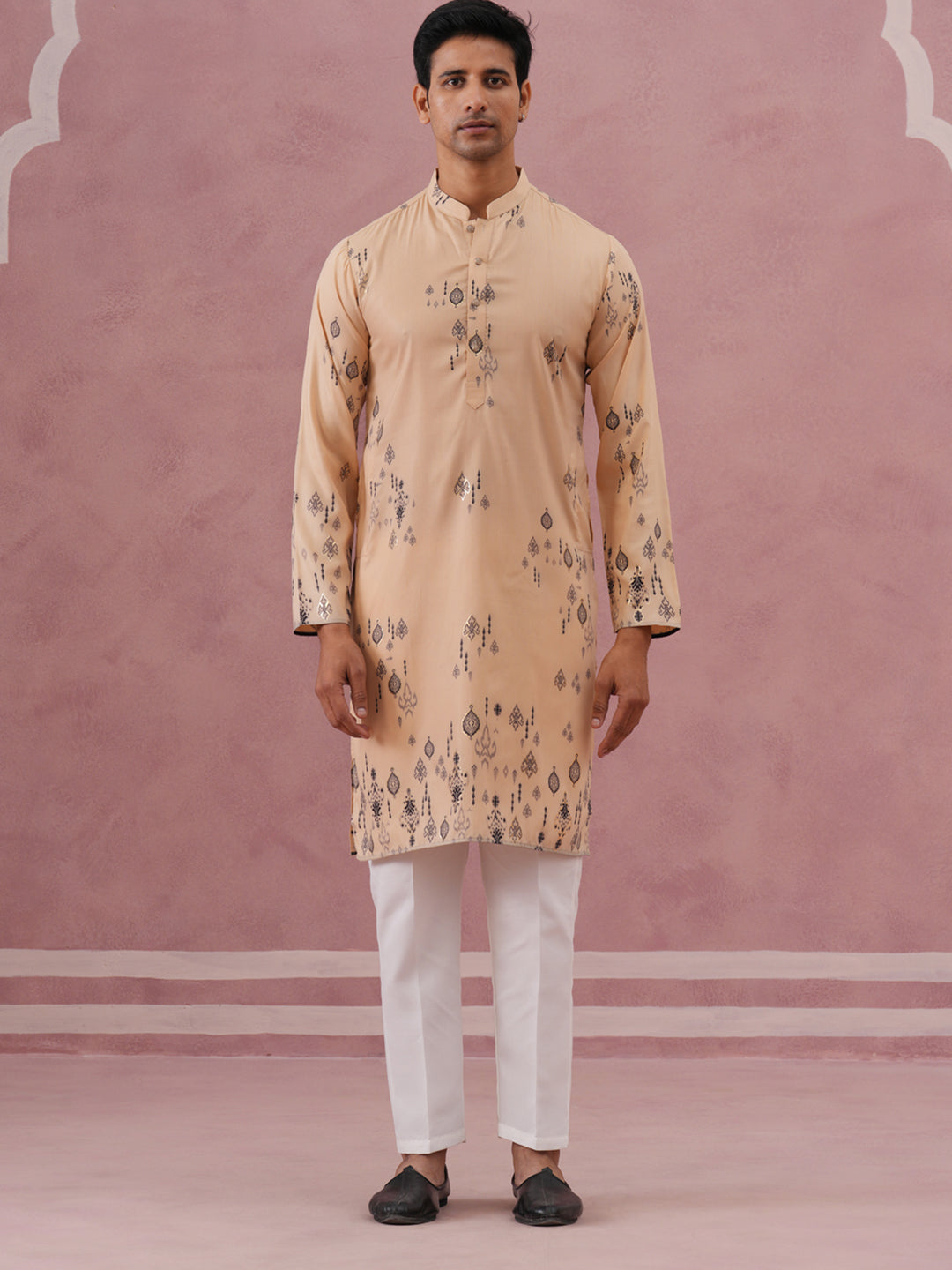 Men's Foil Printed Festive Kurta Pyjama Set
