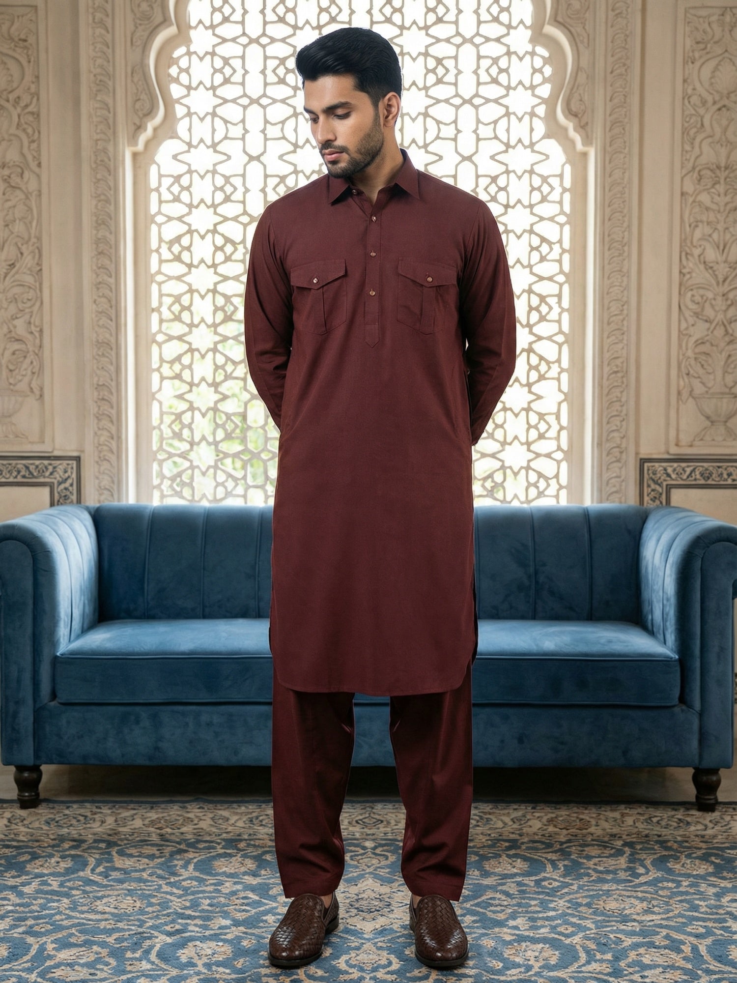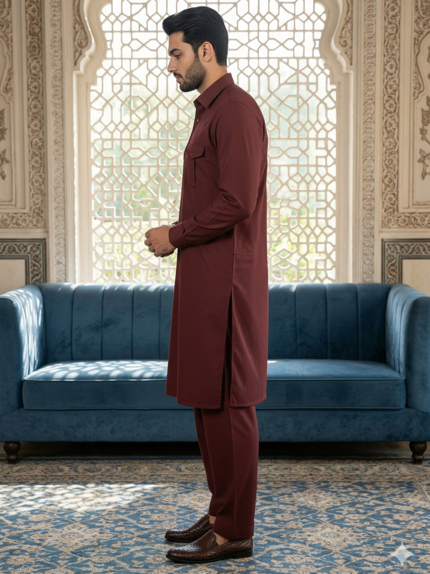 Men's Solid Pathani Kurta with Salwar