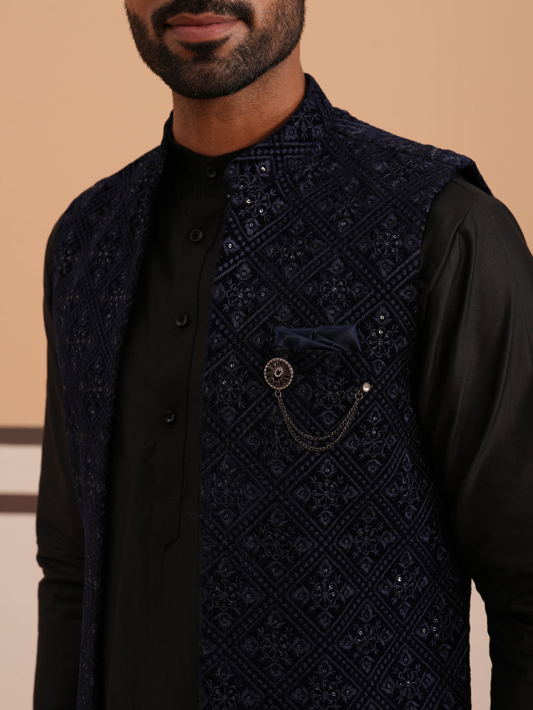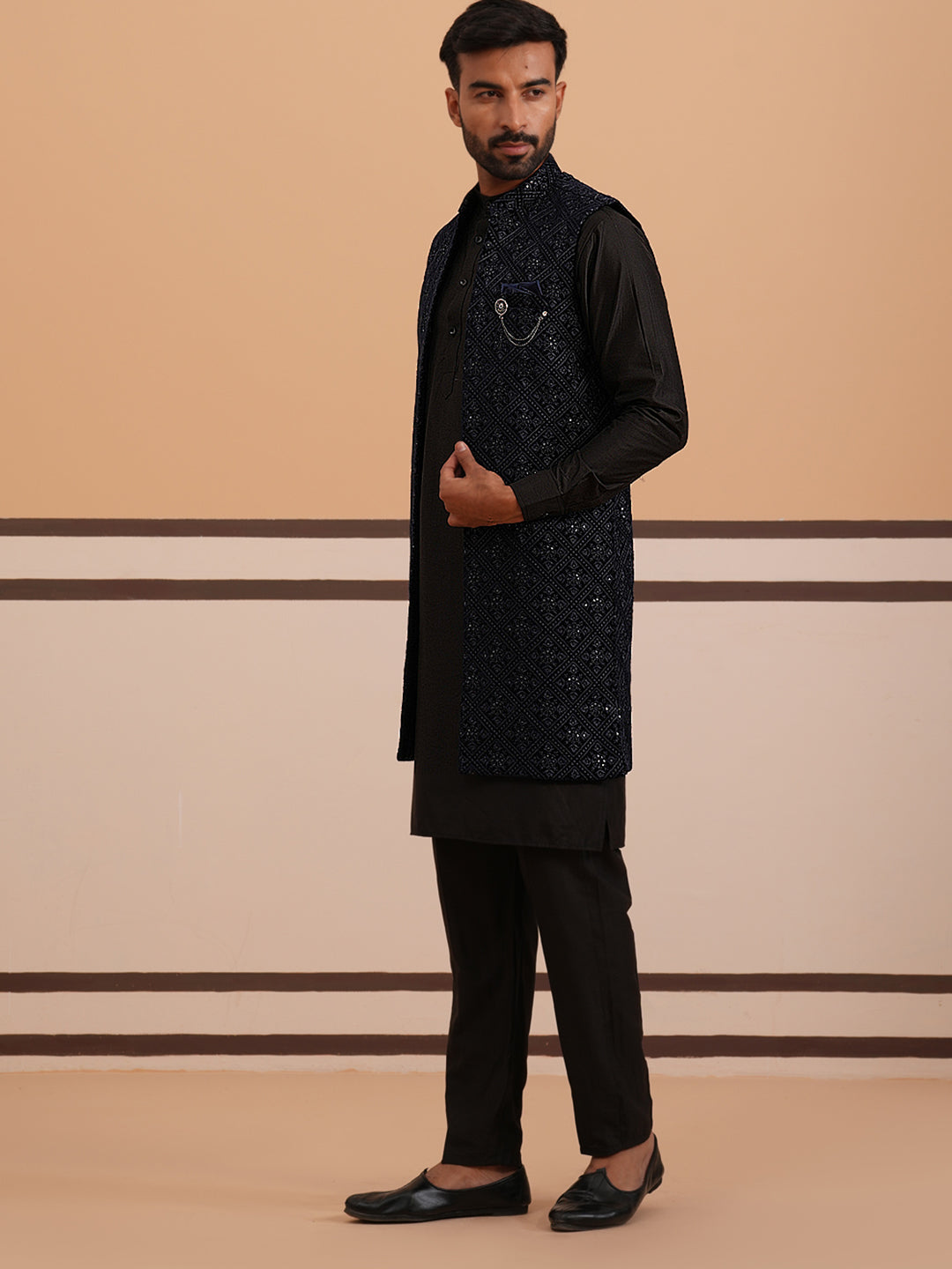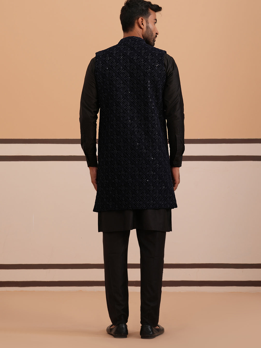 Wash Care : Dry Clean Only.Kurta-70% Silk, 30% Cotton, Nehru Jacket- 100% Velvet
