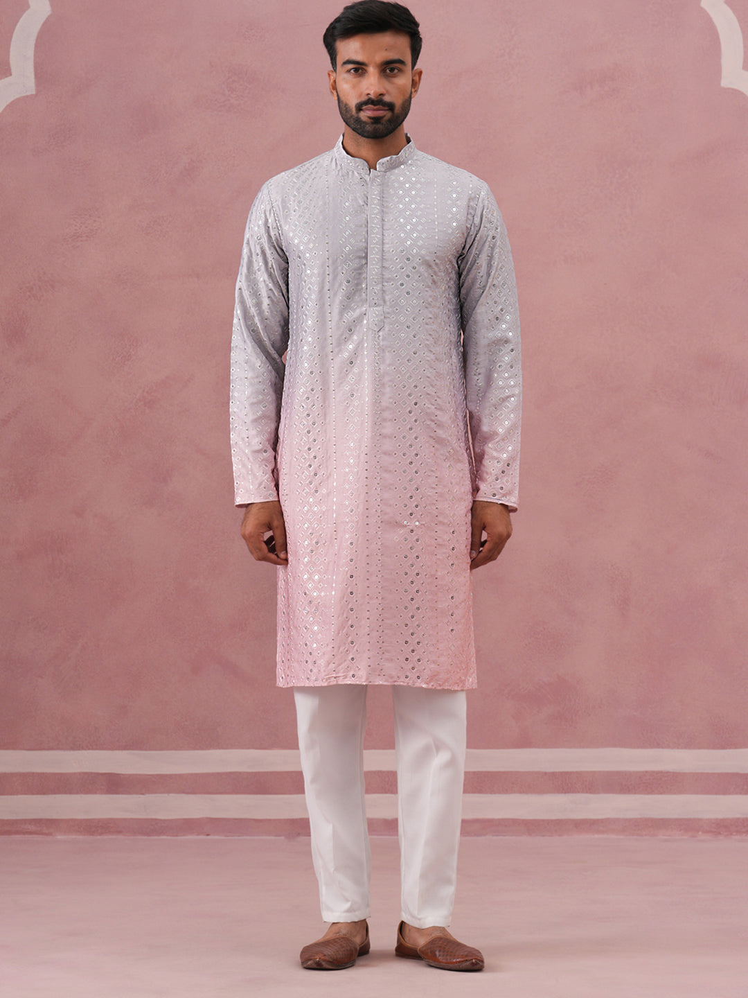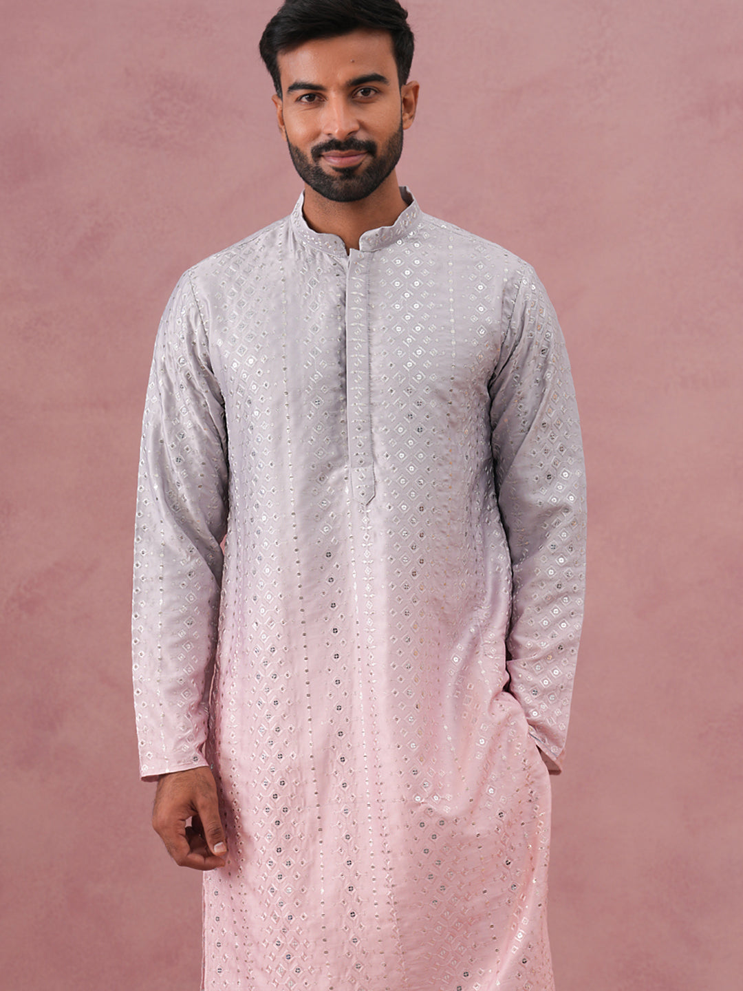 Ombre Silk Blend Kurta Pyjama Set with Sequin Work
