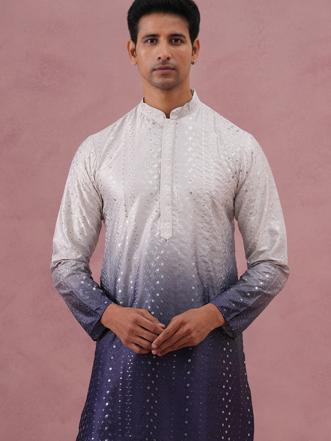 Ombre Silk Blend Kurta Pyjama Set with Sequin Work