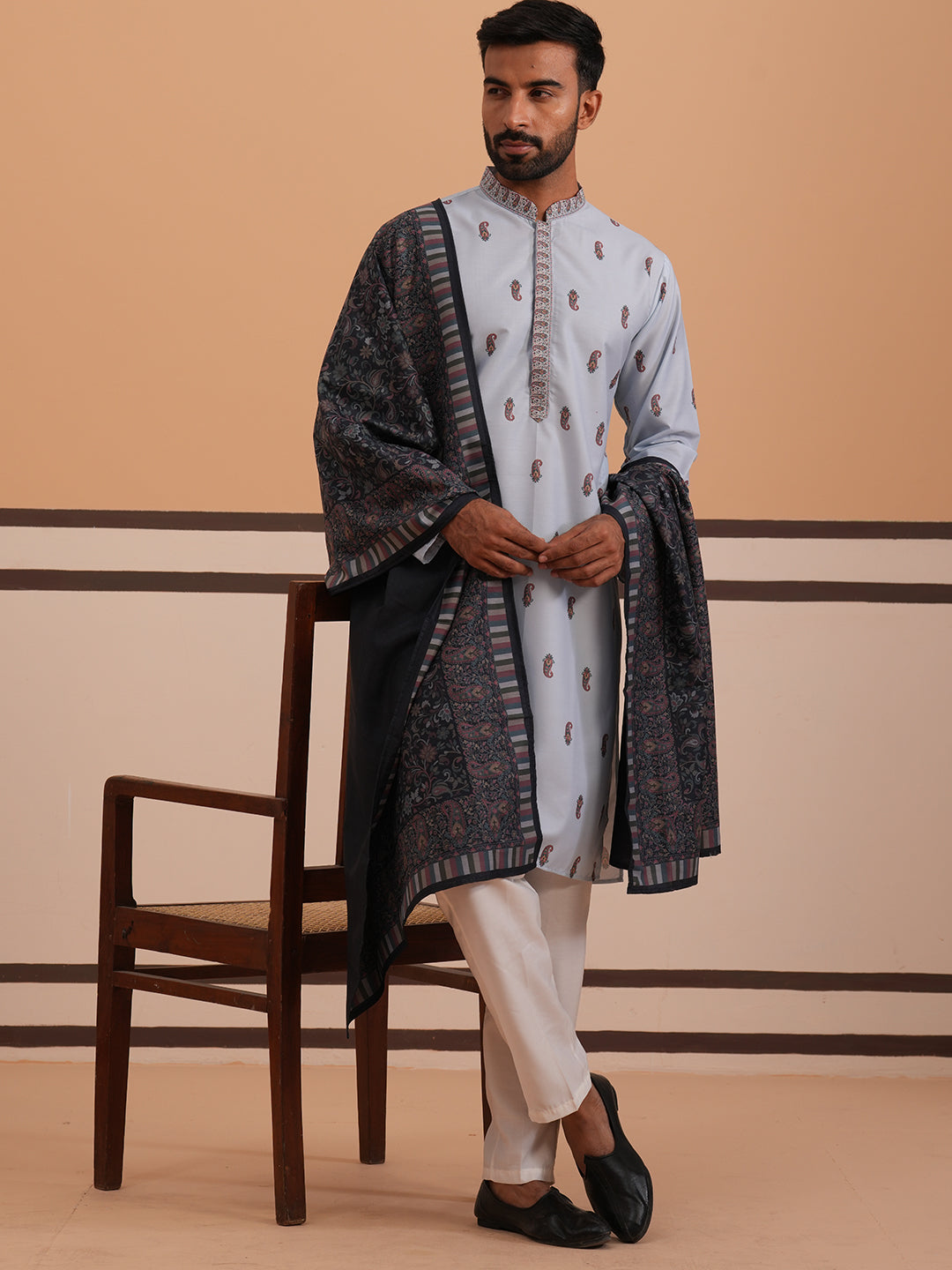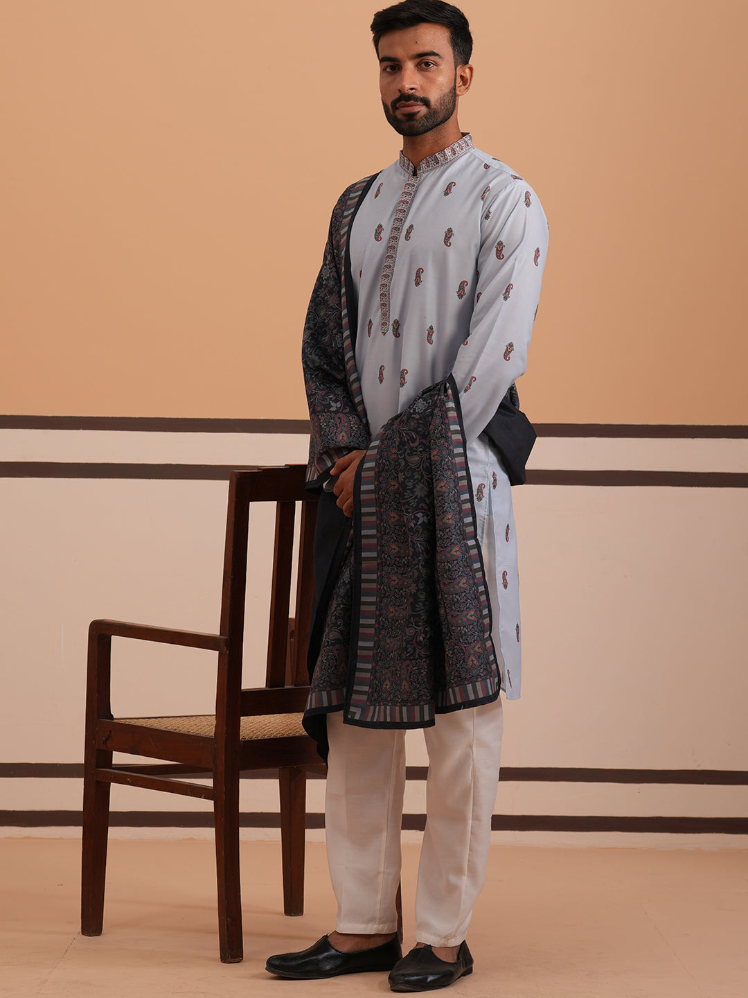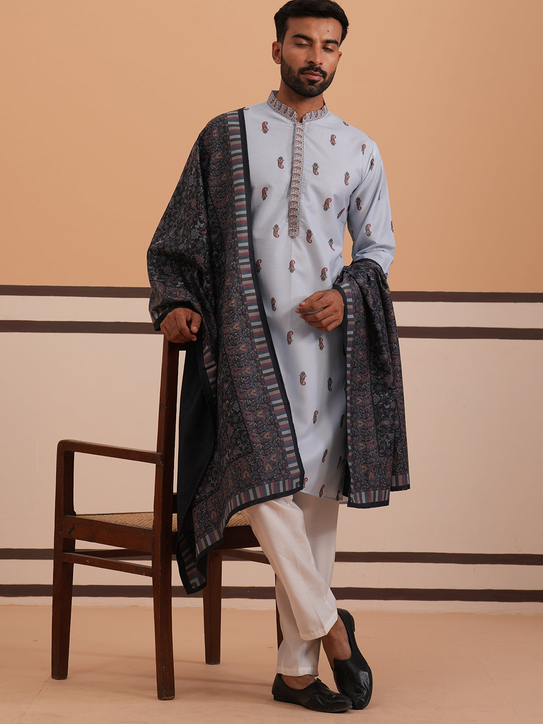 Paisley Print Kurta Pyjama Set with Contrast Dupatta