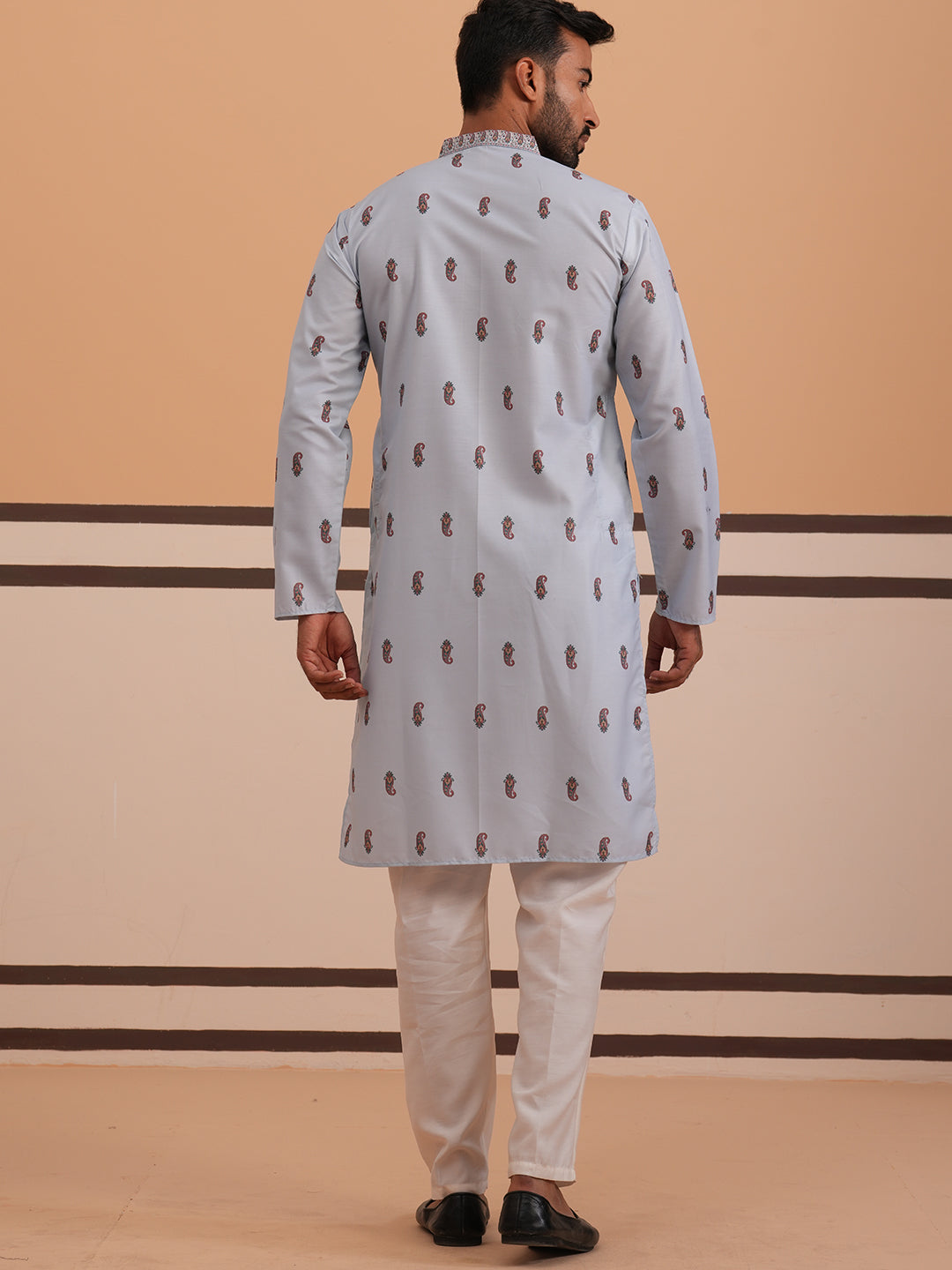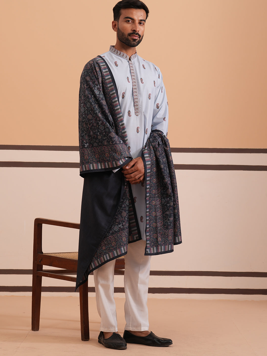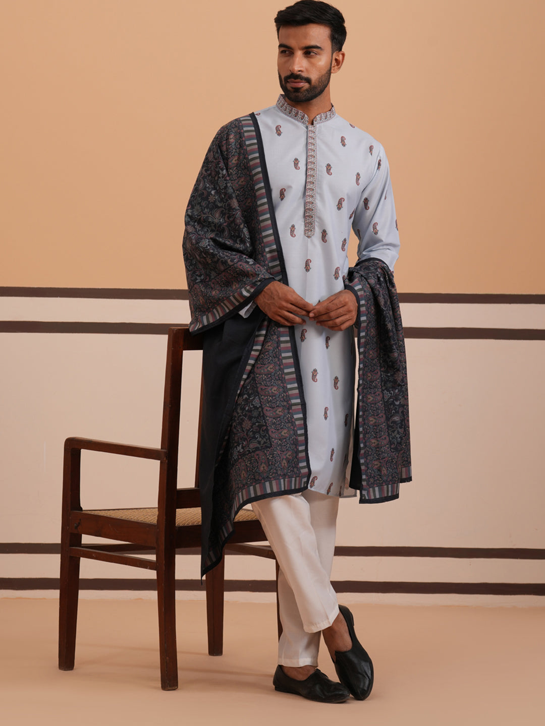 Paisley Print Kurta Pyjama Set with Contrast Dupatta