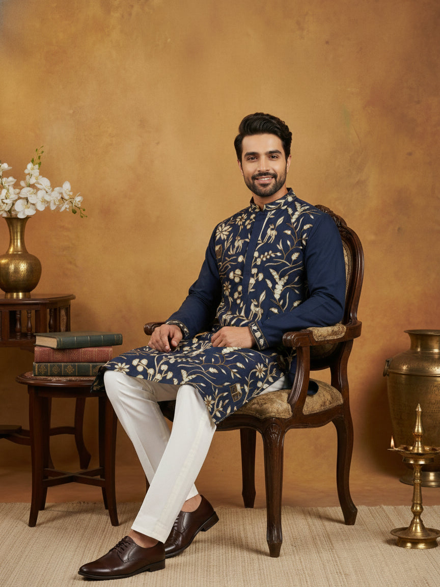 Silk Blend Designer Embroidered Kurta Set