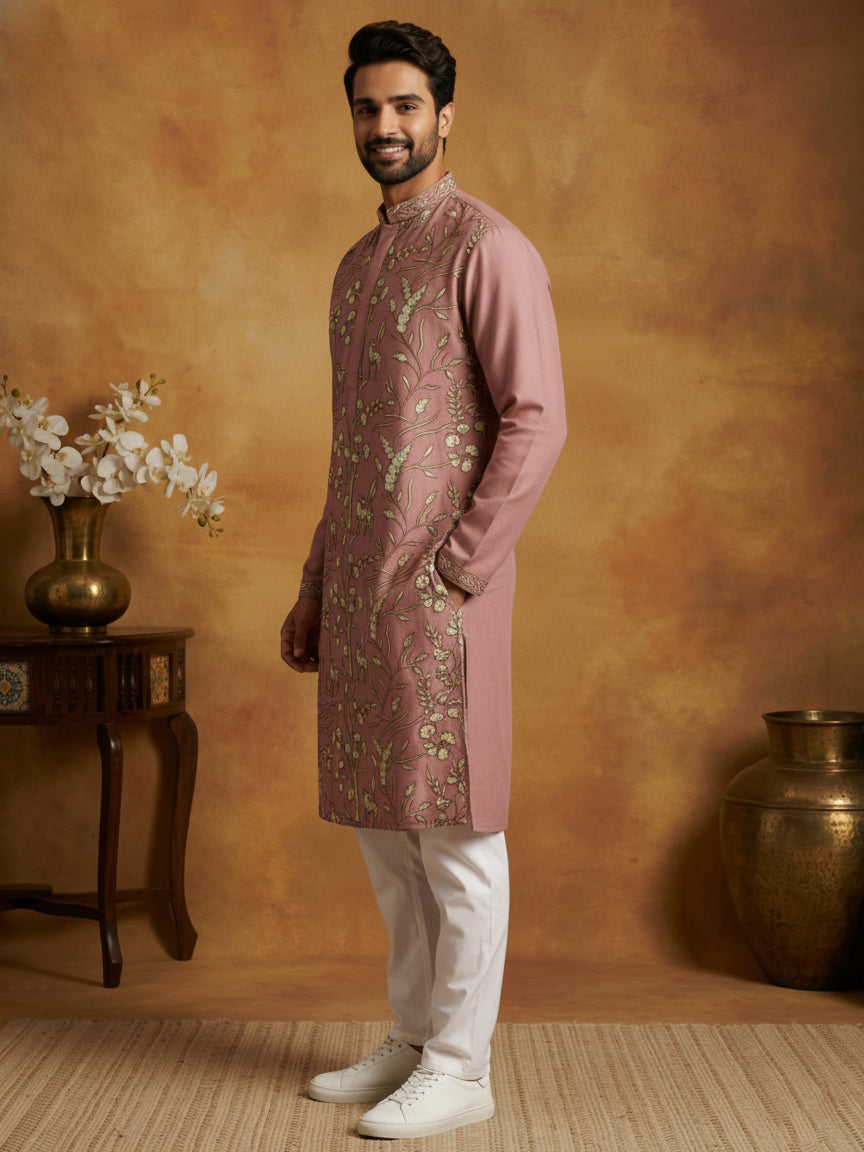 Silk Blend Designer Embroidered Kurta Set