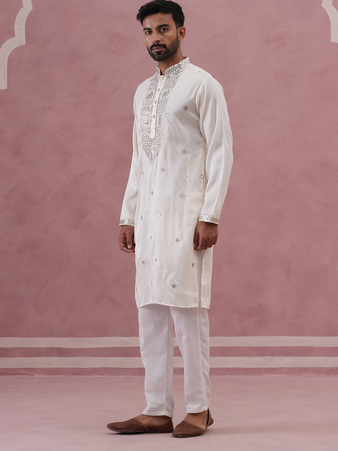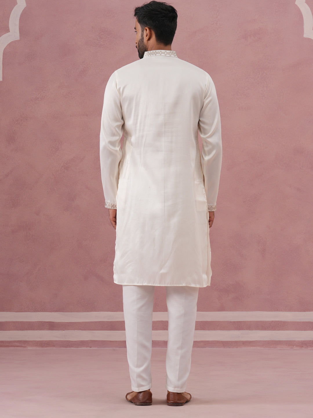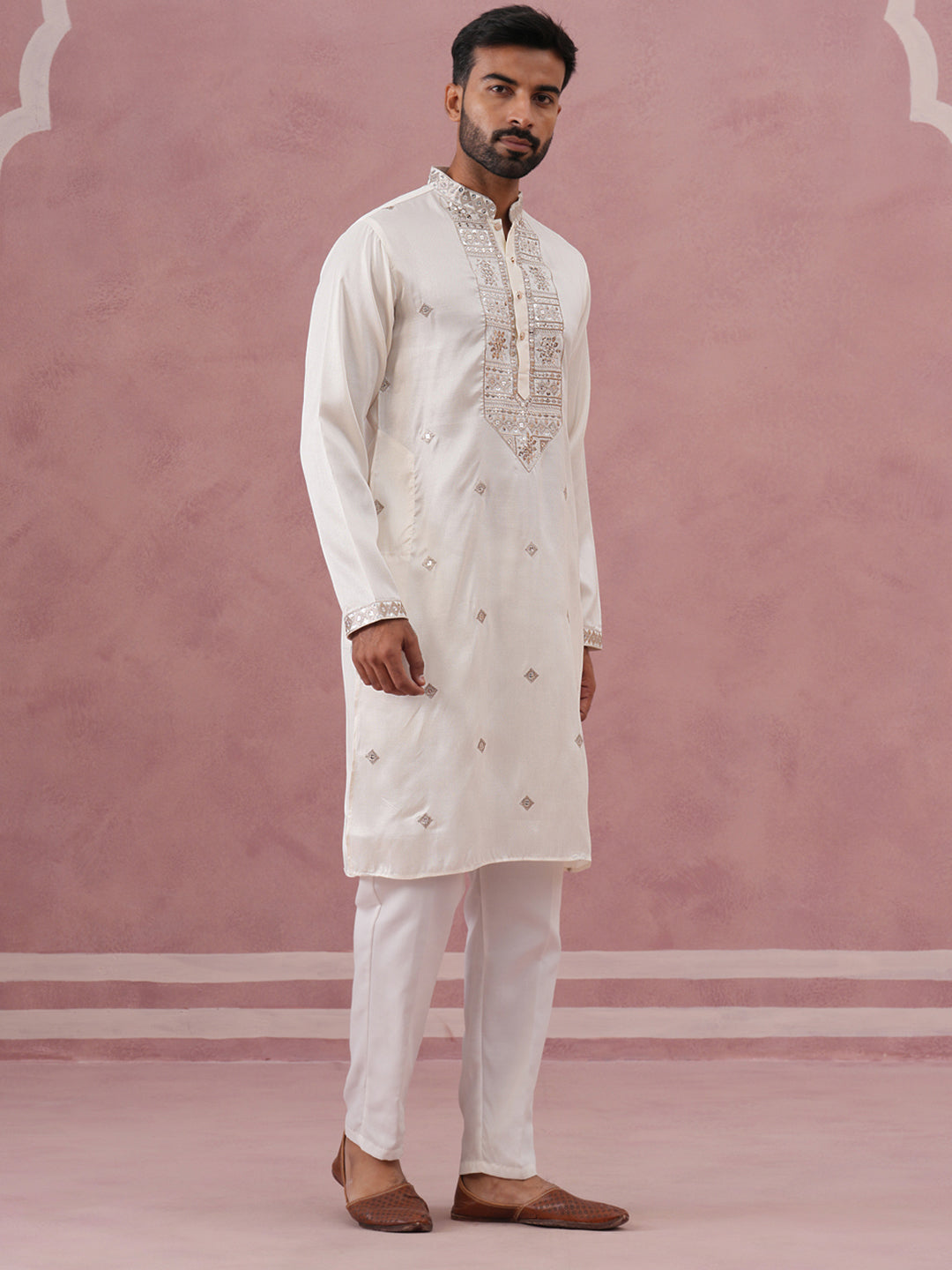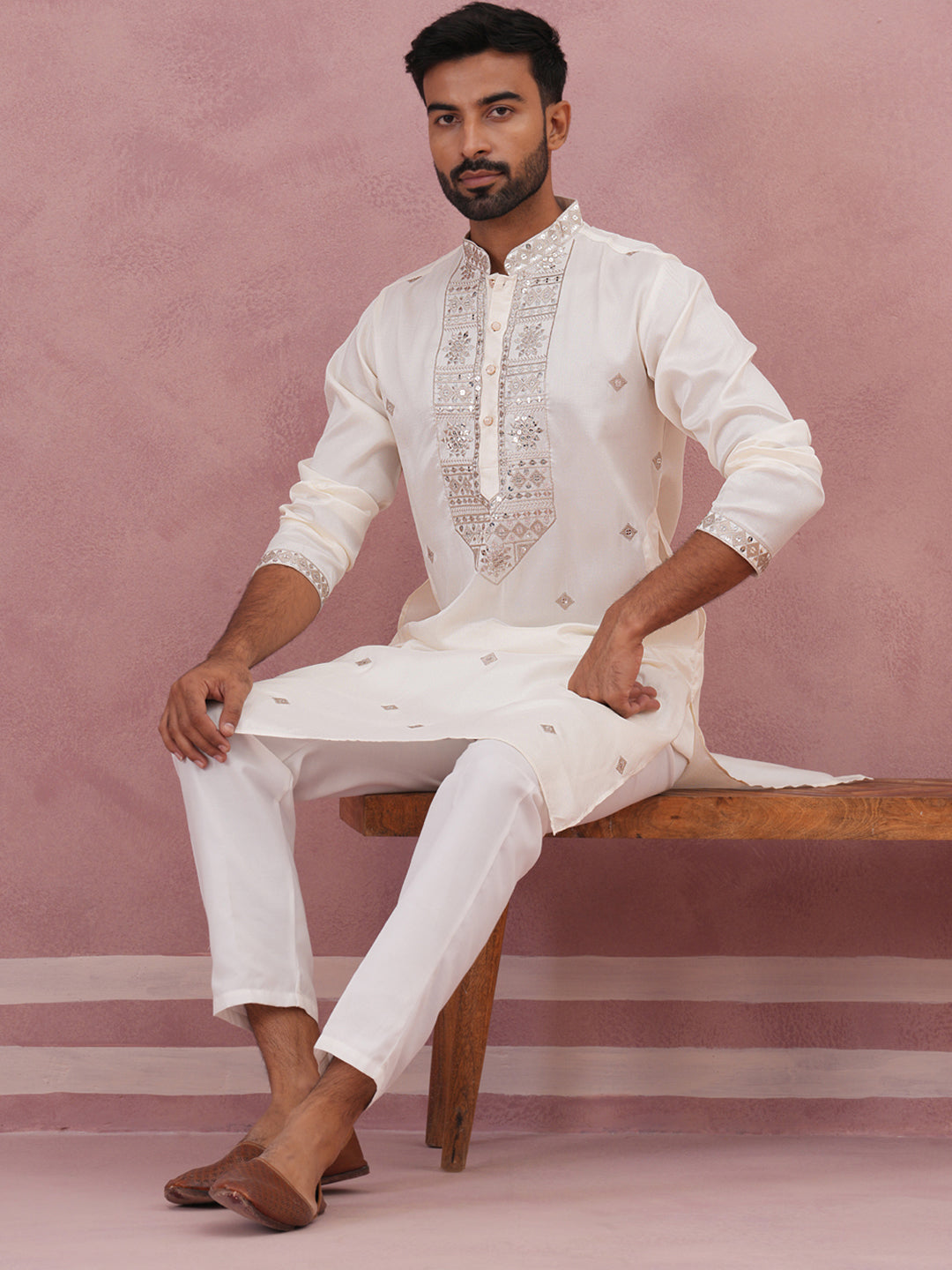 Silk Blend Embroidered Kurta Pyjama Set for Men