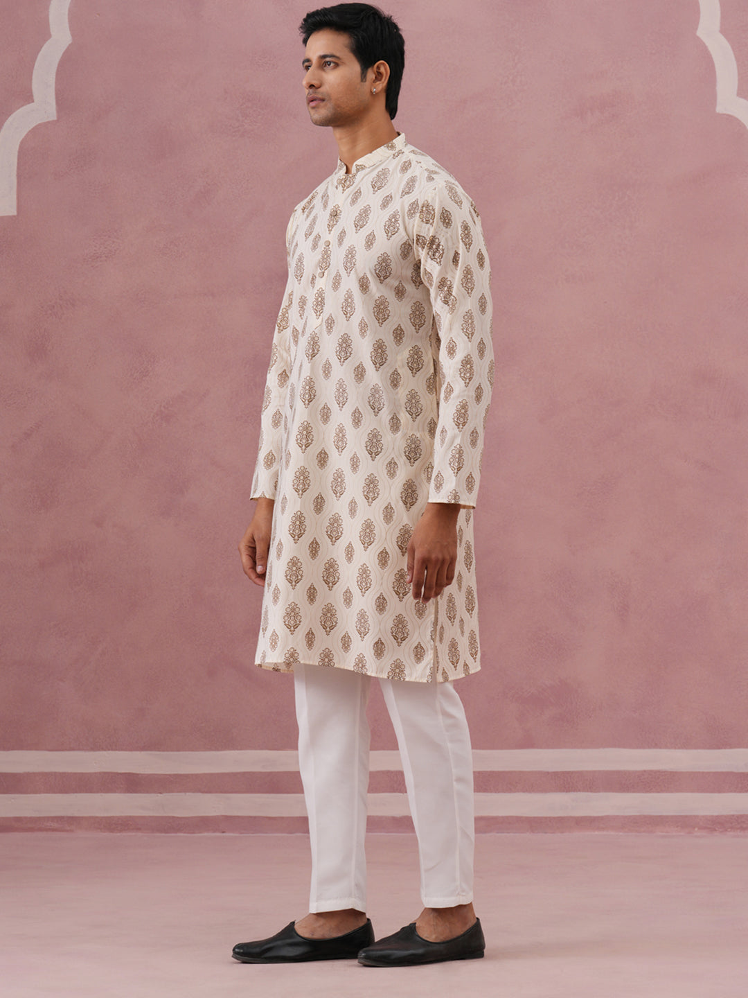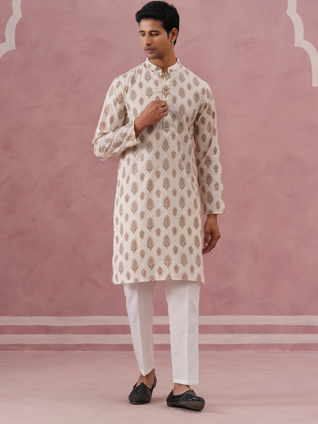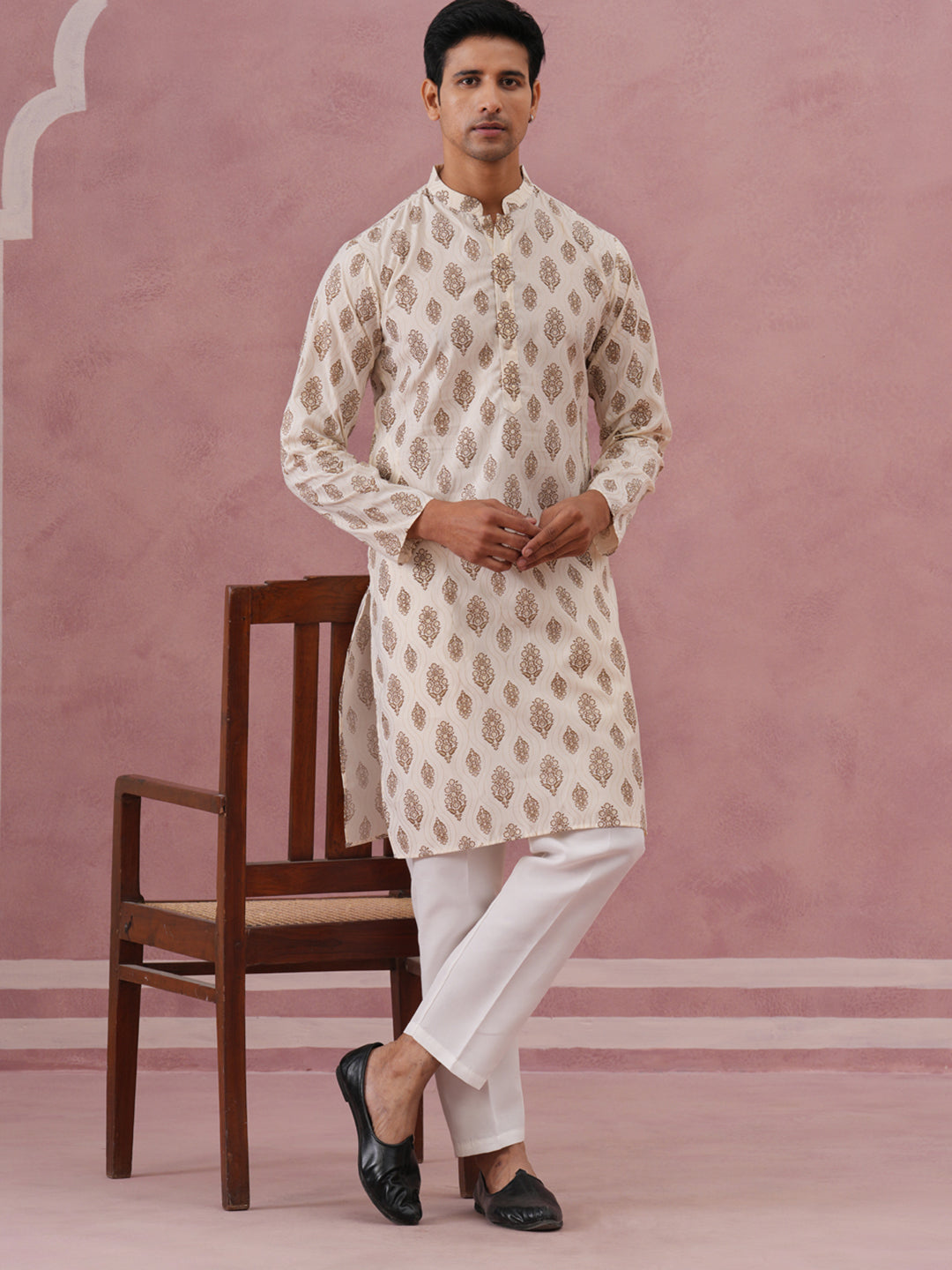 Silk-Blend Foil Printed Festive Kurta Pyjama