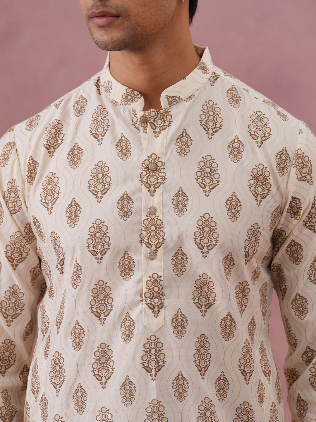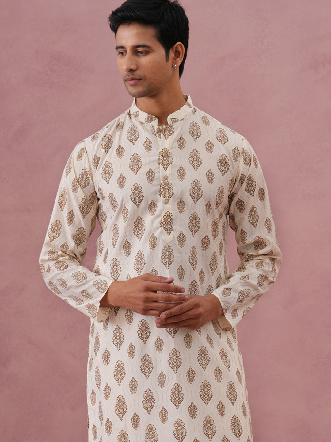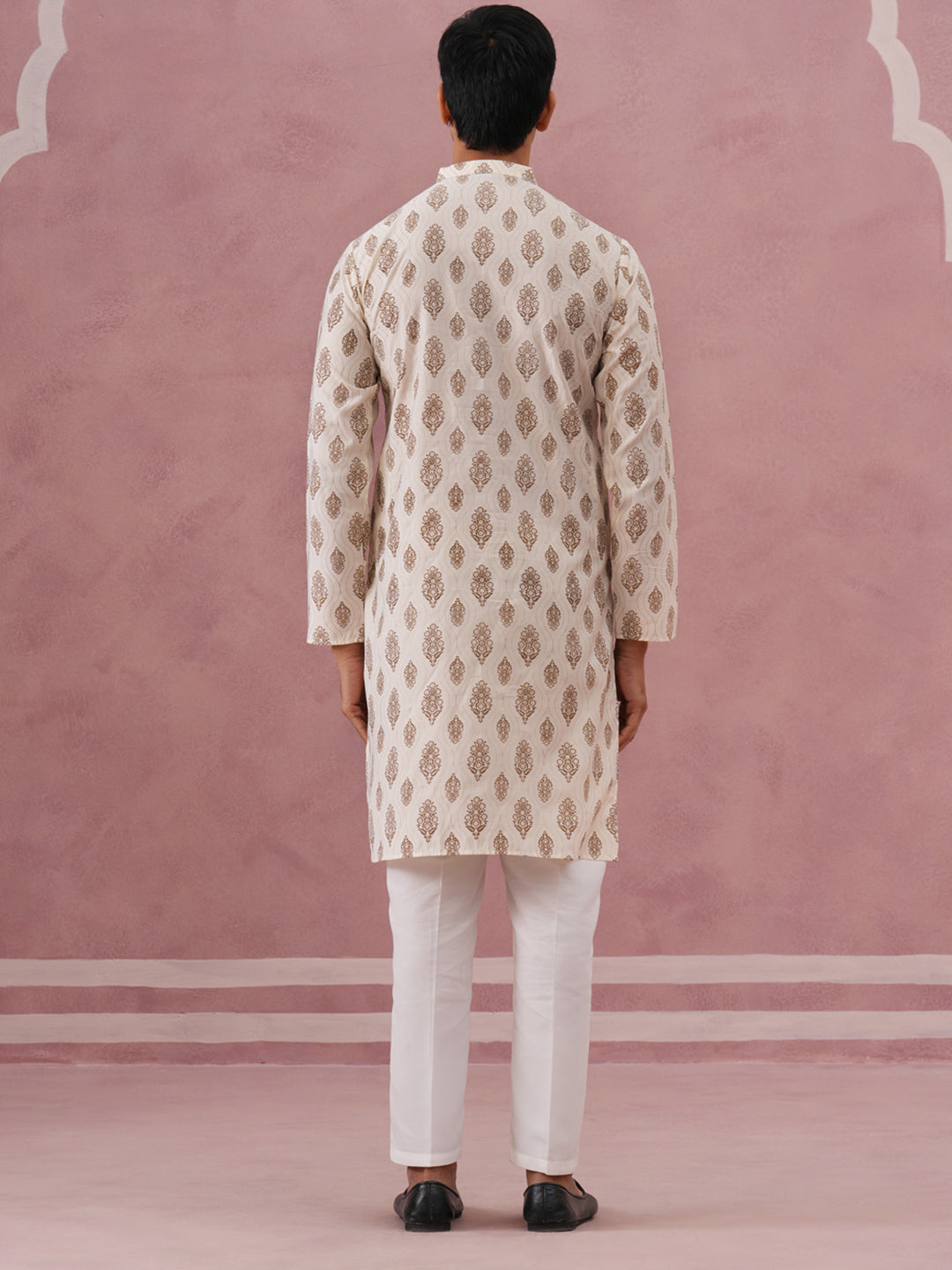 Silk-Blend Foil Printed Festive Kurta Pyjama