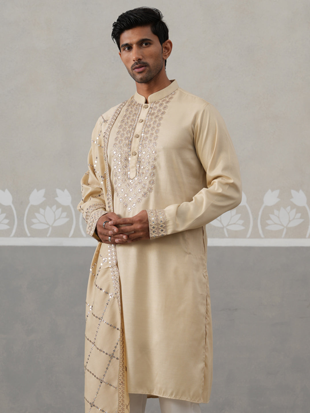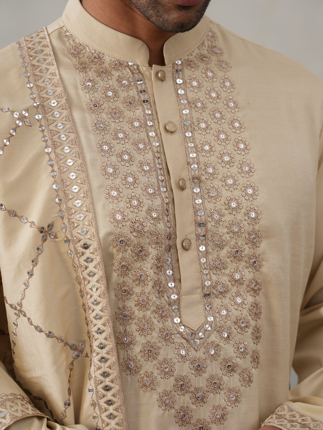 Silk Blend Sequins Embroidered Kurta with Dupatta