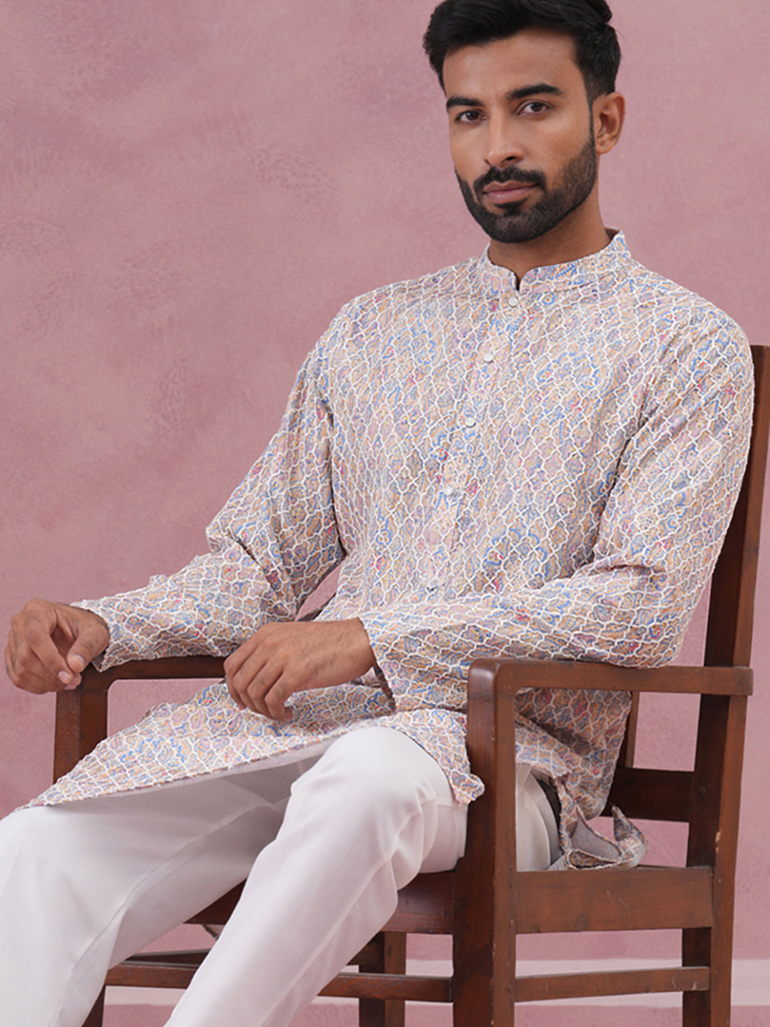 Traditional Cotton Blend Embroidered Kurta